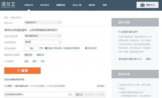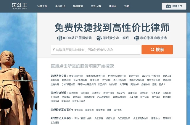 法斗士是一个在法律领域的垂直搜索引擎,帮助用户免费快捷高效的找到自己满意的律师和法律服务。