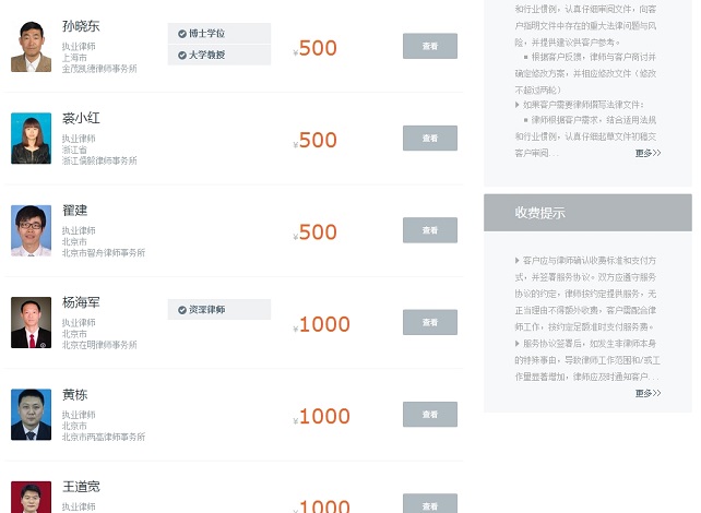 在法斗士上,律师可以针对不同的服务进行自主报价,除非出现极端价格(比如极低价或极高价吸引眼球),否则法斗士一律不对律师的报价进行干预。